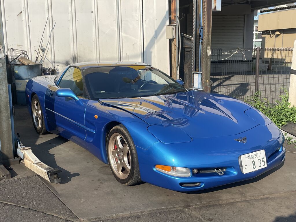 久しぶりにお越しになった馬仲間のT様は愛車コルベットの車検でした。