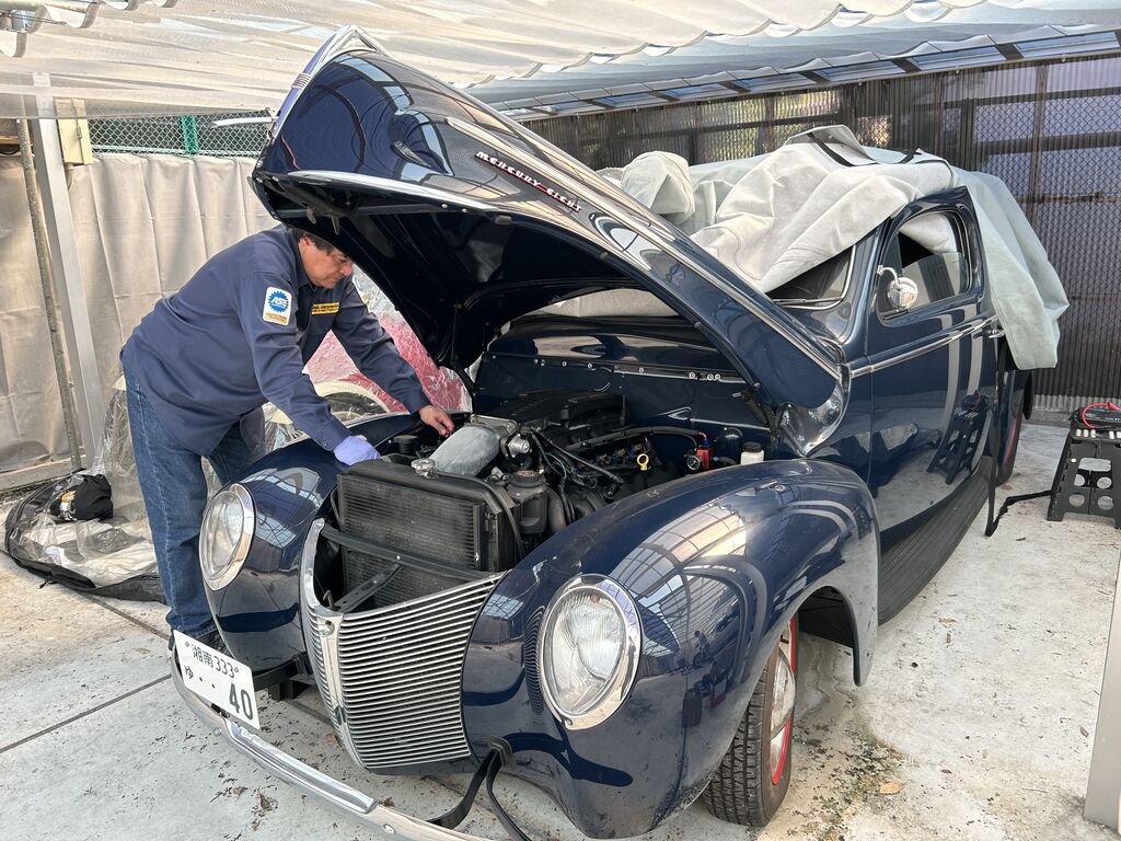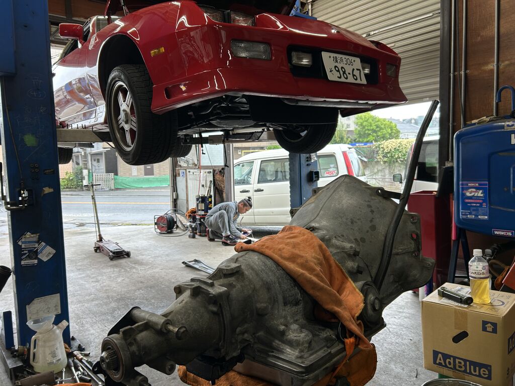 新規のお客様よりリピーター作り2025/10/14 ガソリン漏れの次はオイル漏れ10ケ月前にお納めしたサードカマロエイブルは自社販売の車両は年式を問わす6ヶ月の保証を付けています。と言っても走る、曲がる、止るに限定。こんな曖昧な表現だけどユーザー様と揉めるう事は先ずない。皆さん年数の経った車を理解してくださる寛大な方が多いので救われています。オイル漏れは走る事に関わるのでは? との質問に・・・ 当然です。しかし漏れる量ですよね。 この車は半年は過ぎてしまっていますので残念ながら有償修理をご理解いただきました。でも普通にミション下ろしてこの作業をした場合の3分の一程度のご請求にご納得し喜んでくださっています。 35年経過の鋼鉄部分の摩耗を保証範囲に入れておくのは大博打。でも引き続きお越し頂けるよう最善の努力と誠意をもって当たります。先週も山形蔵王往復800キロ日帰りでアメ車では有りませんが12年前に納めた車を現地の車屋さんがギブアップと言う事で愛車のセーフティーローダーと共に出張ってまいりました。 その晩には台湾からの来客を仲間で迎えることになっていたので夕方には帰社、その後西麻布へ!さすがにその翌々日に疲労が隠せなくなりました。(汗) 愛車セーフティーローダーの活躍は続きました。車検の為成田からエイブルに向かわれていたワゴニアが途中でオーバーヒート。私がエイブルに居たので緊急スクランブル! エンジンルームは茶色い冷却水と思われる液体が飛び散っていました。ウオーターポンプからの漏れでした。車検の前にこちらの修理。 でも今週のレスキューはやはりこれですようか?足柄郡湯本に数年眠る眠るマーキュリー改(サリーン)をいよいよ救出することに。音楽、特にバイオリンに携わる方なら知らない人はいない方なので私はお名前は控えていましたが。このお方自信がFBでこの日の事を上げていたので私も解禁。古沢巌facebookで検索してみてください。
